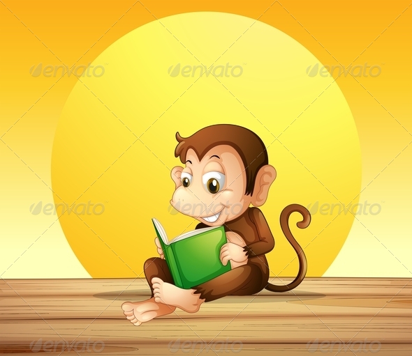Illustration of a monkey reading
